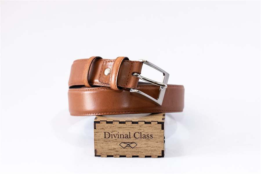 Cinto básico e liso, construído em pele com fivela de metal. Disponível em azul, bordeaux e camel para fazer pandã com alguns dos modelos de sapatos Divinal Class.